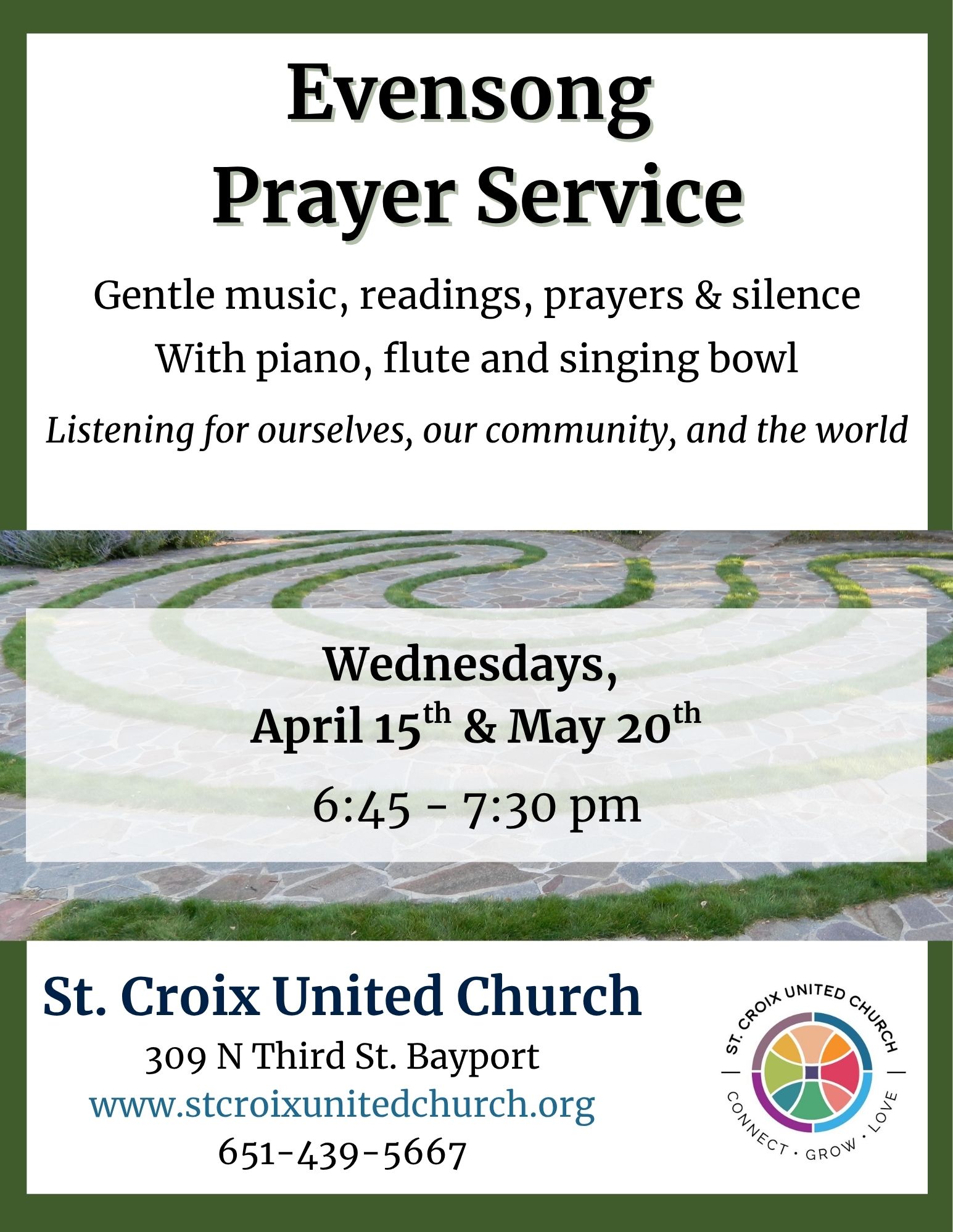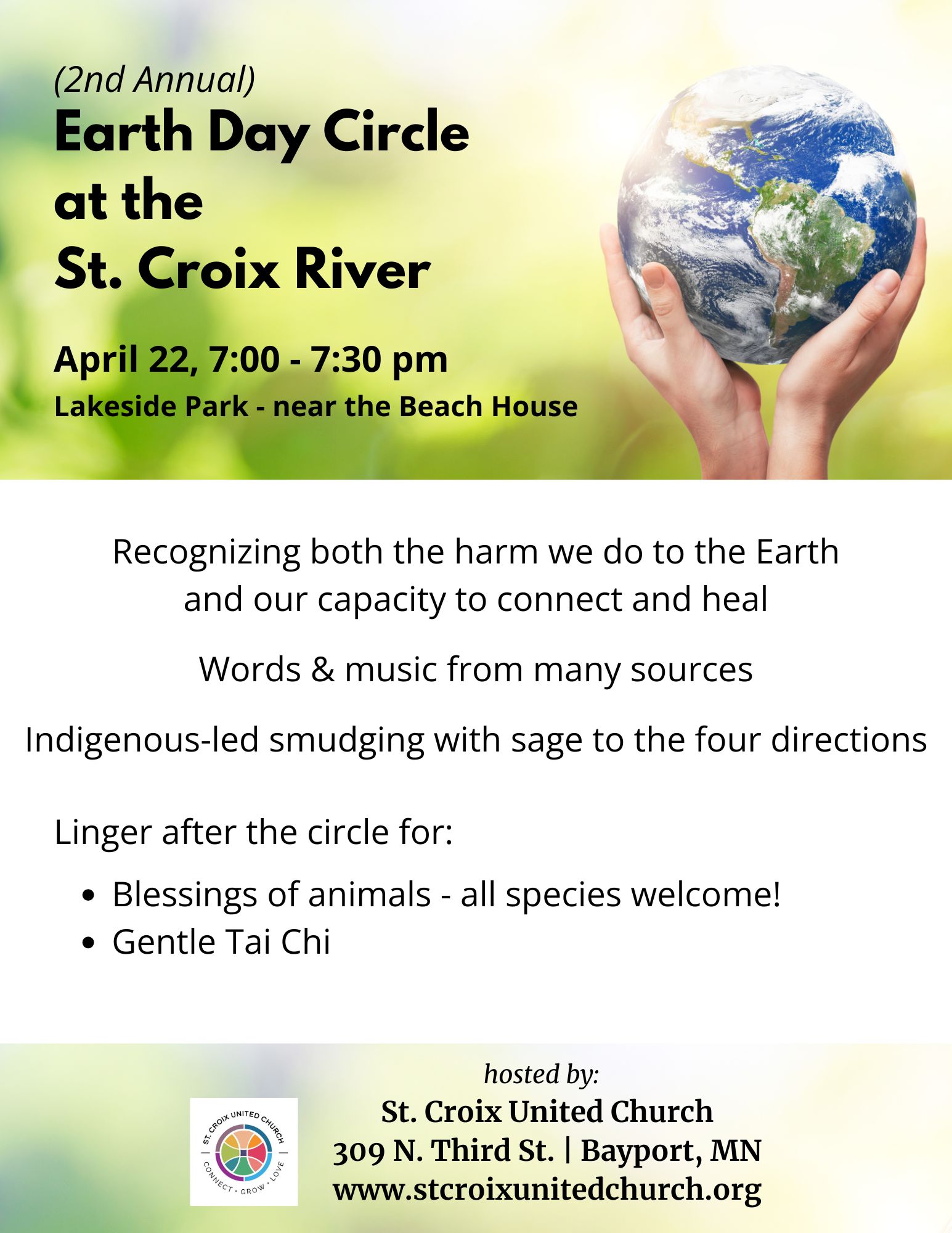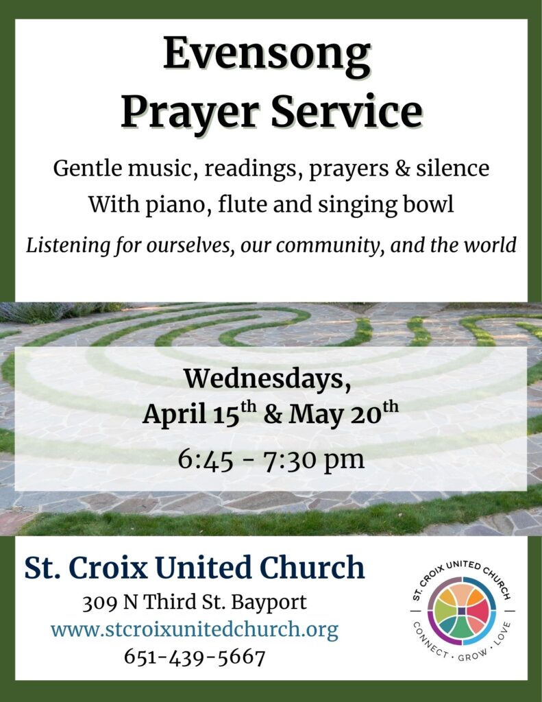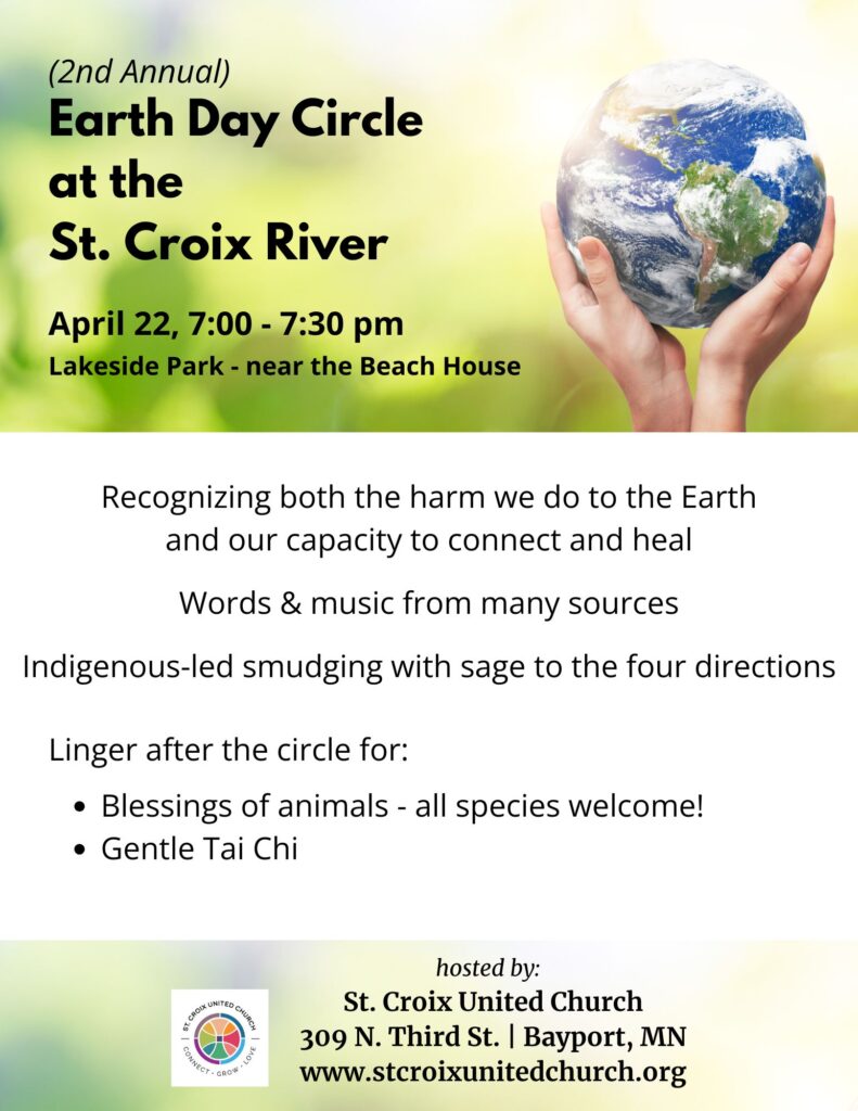 "St. Croix United Church is an open and affirming Christian community, which is faithfully committed to ministries of compassion, diversity, equity, and social justice. United by the grace, love, and forgiveness we know in Jesus Christ, we honor the sacredness of relationships with our neighbors. We welcome persons of every gender identity and expression, sexual orientation, race, ethnicity, physical ability, mental health status, and socio-economic condition into the full life and ministry of the church. By embracing our diversity, we learn and grow into a stronger community."