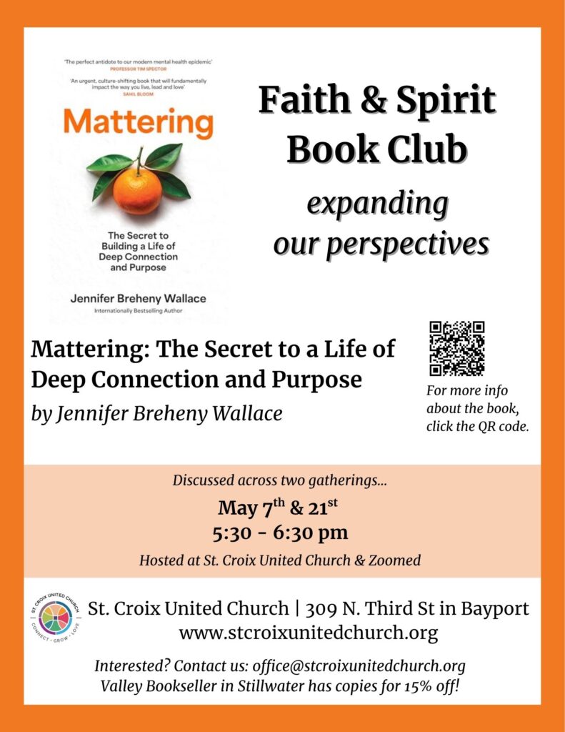 St. Croix United Church launched in October 2023 as a congregation dually affiliated with the United Church of Christ (UCC) and the National Association of Congregational Christian Churches (NACCC). To learn about our history, rooted in People's Congregational Church (Bayport) and St. Peter's United Church of Christ (Stillwater), click here.